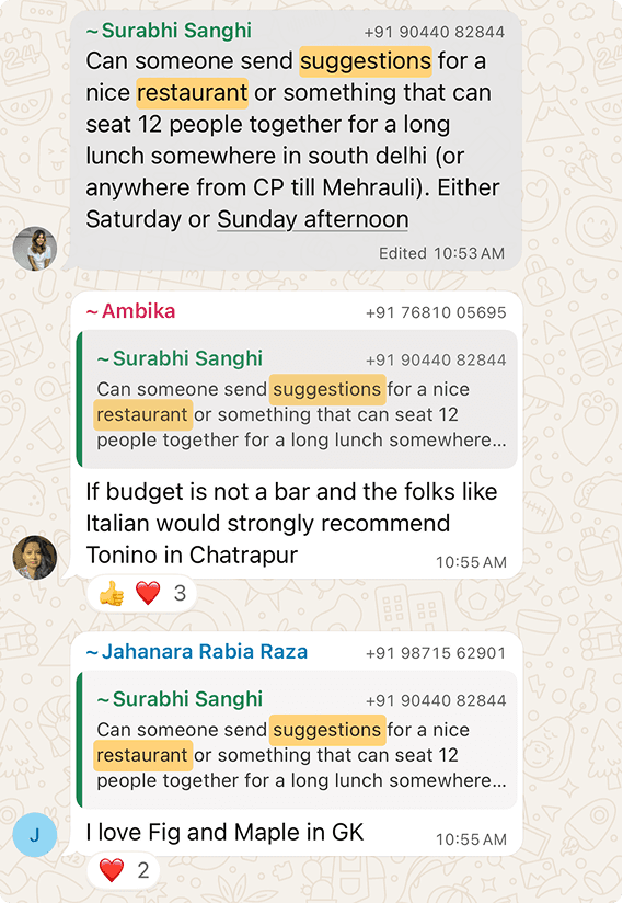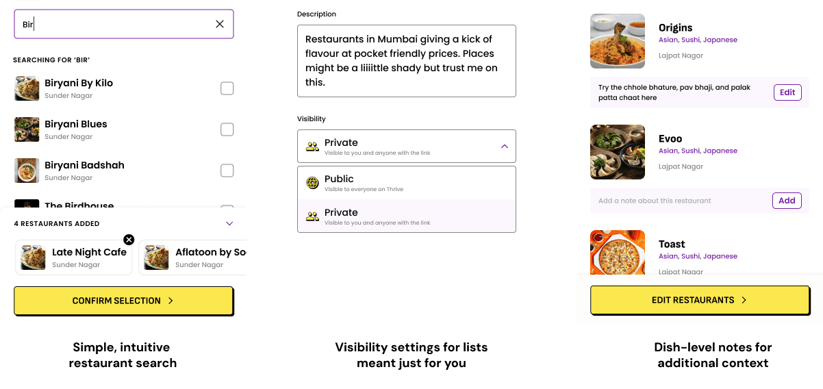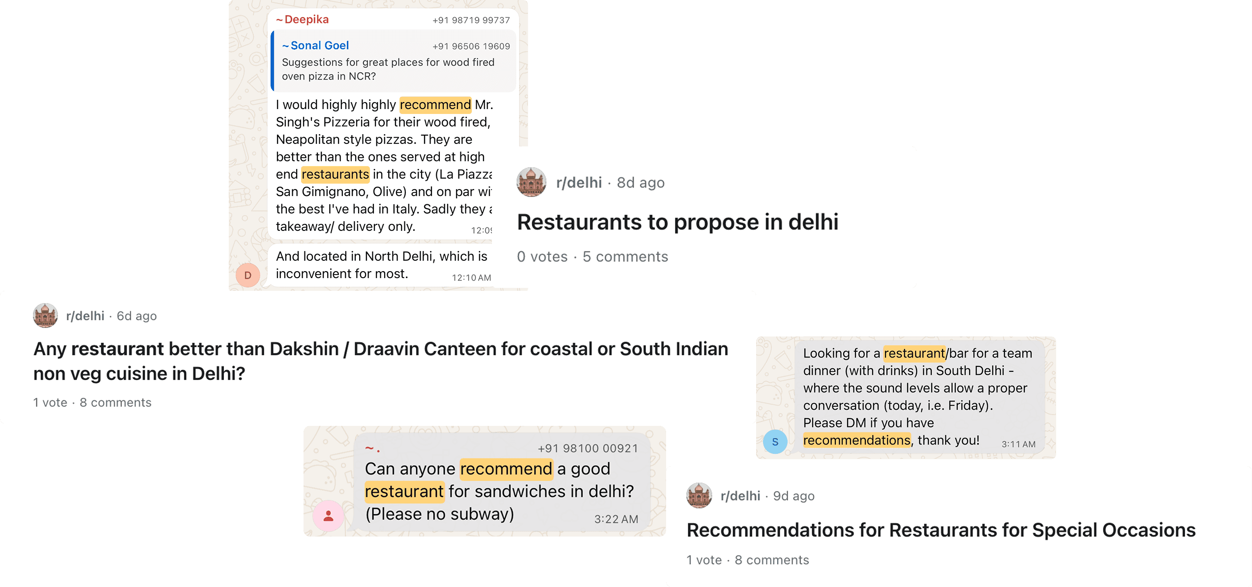 Users were already asking friends for where to eat, just across different apps. Recommendations recreated that behavior inside Thrive.